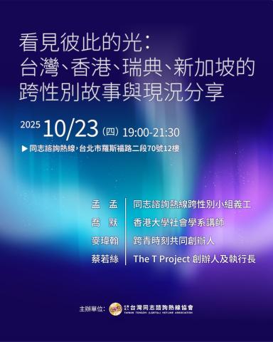 看見彼此的光:台灣、香港、瑞典、新加坡的跨性別故事與現況分享
