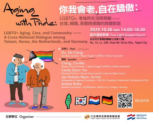 你我會老,自在驕傲:LGBTQ+老後的生活與照顧-台灣、韓國、荷蘭與德國的跨國對話