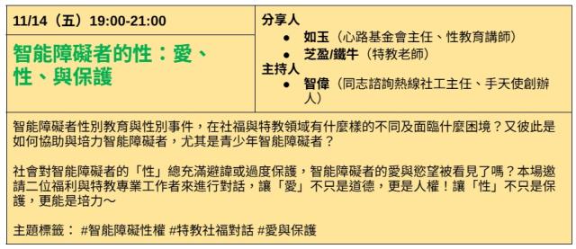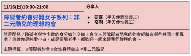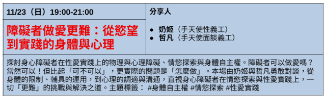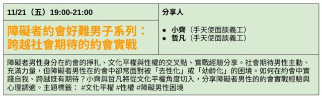 出手相助2.0!性別與障礙平權系列講座-「實踐」與「親密關係」
