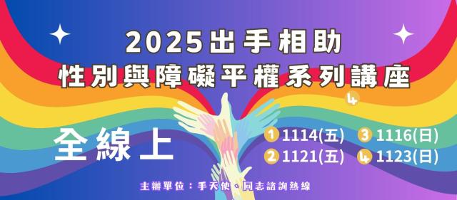 - 主辦單位:手天使、台灣同志諮詢熱線協會
